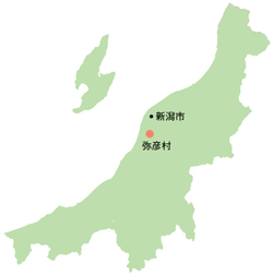 新潟県中央部の日本海寄りに位置する弥彦村。