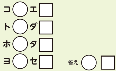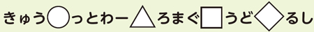 しりとりで並んでいる言葉の共通部分が○△□◇になっています。