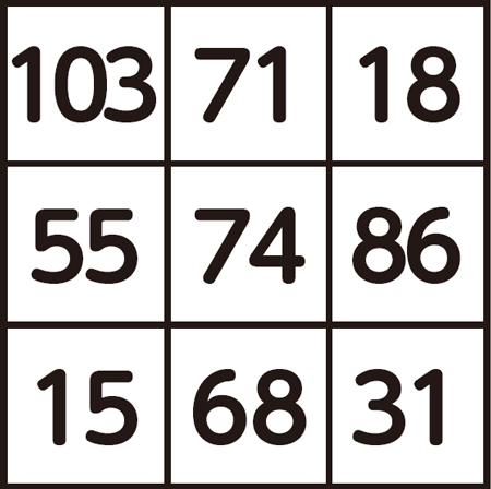 下の9個の数字の中から、合計が200になる数字3個を選んでください。