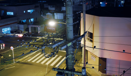 徳之島の森は闇に満たされている。一方、街中は夜もずっと灯りがともっている。早寝早起きの島で人々の姿はないが、真夜中の静まり返った街路に信号機の赤と青が点滅する光景は都会と変わらない。