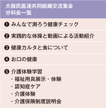 今回の集会の目的について、大阪民医連共同組織委員長の小森佳子さんは「過去の集会は話を聞いて『よかった』で終わる傾向が強かった。今回は集会の“次”につなげることが狙い。分科会を体験した参加者が、地元の班会やサークルで具体的に取り組み始めることを期待したい」と話します。