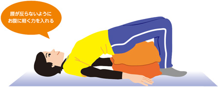 ①仰向けになり、腰の下にクッションなどを入れる。