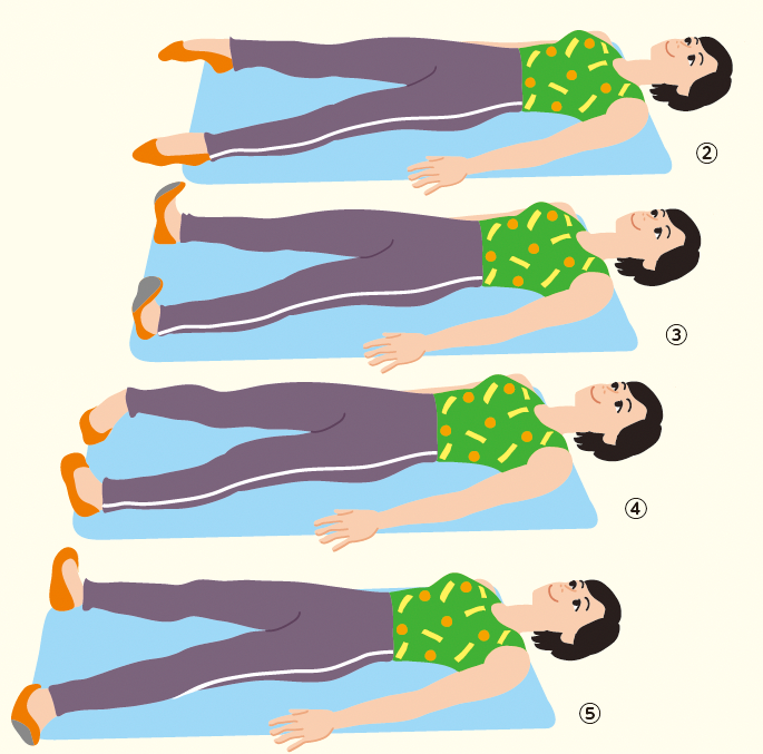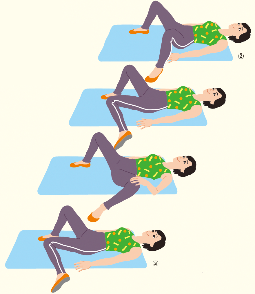 ①仰向けになり、両膝を立てる。