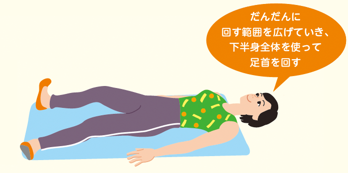②両足のかかとを床につけたまま、両足首を外回りに回す。