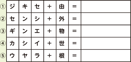①ジ由セキ(自由席) ②シ外セン(紫外線)