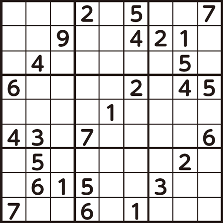縦の列(9列)、横の列(9列)、太線で囲まれた3×3のブロック(9個)に、それぞれ1~9までの数字が入ります。