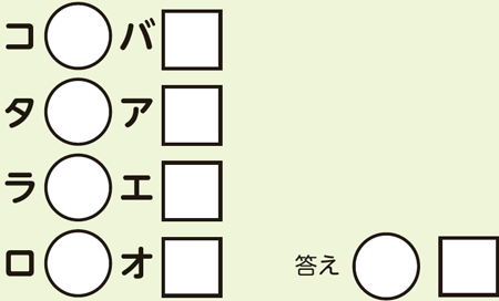 ○は全て同じ文字、□にも全て同じ文字が入ります。入る文字を答えてください。