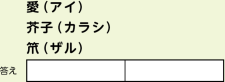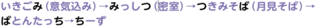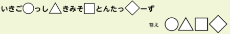 しりとりで並んでいる言葉の共通部分が○△□◇になっています。