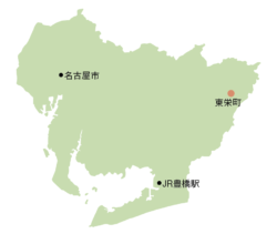 JR豊橋駅から東栄駅まで電車で約1時間半、車で約1時間15分