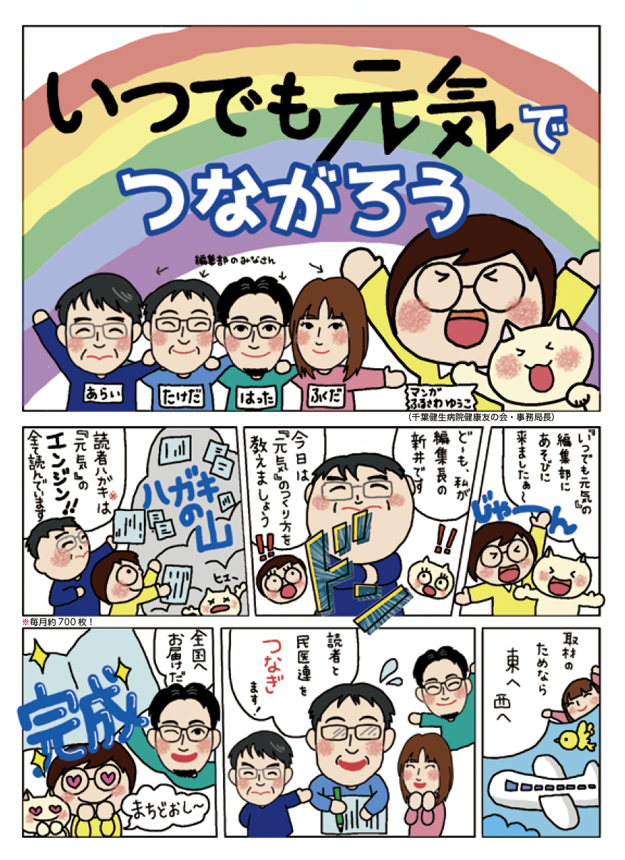 そんな時に届いたのが『元気』10月号。親仁会まちづくり推進部の河本里美さんは、さっそく記事に出てくる広島中央保健生協に連絡。全日本民医連共同組織活動交流集会(9月、岡山市)で、同保健生協理事の山下則江さんと名刺交換し、メールでやり取りしてアドバイスを受けました。