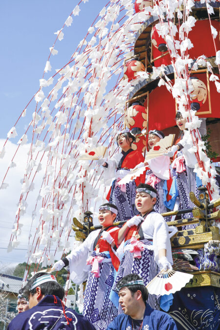 「山車の曳き手に囃子手、それと観客の距離感がとても近いお祭りです」と語るのは富田能成町長。武甲山をバックに春爛漫の花が咲き乱れるなか、2基の笠鉾(大きな傘や鉾、造花などで飾られた山車)が地区内を曳行するさまは圧巻です。