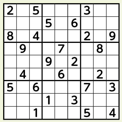 縦の列(9列)、横の列(9列)、太線で囲まれた3×3のブロック(9個)に、それぞれ1~9までの数字が入ります。