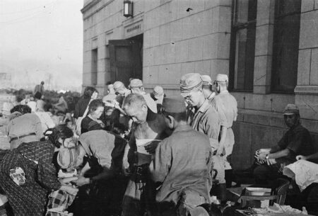 横川駅前を拠点に救護活動をする賀茂海軍衛生学校の救護隊(岸田貢宜氏撮影/岸田哲平氏提供)