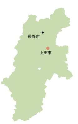 長野県東部の上田市。北は菅平高原、南は美ヶ原高原など2000m級の山々に囲まれ、中央を千曲川が流れます。