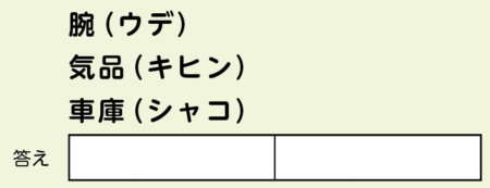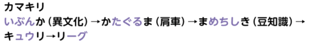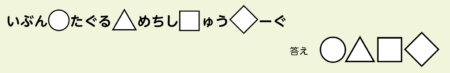 しりとりで並んでいる言葉の共通部分が○△□◇になっています。