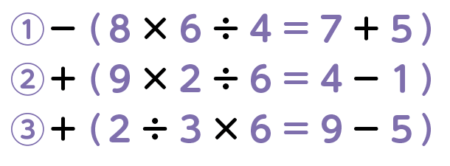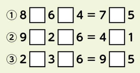次の式を成立させるために、+-×÷の中で使わない記号はどれでしょうか?(記号は一度ずつ使います)