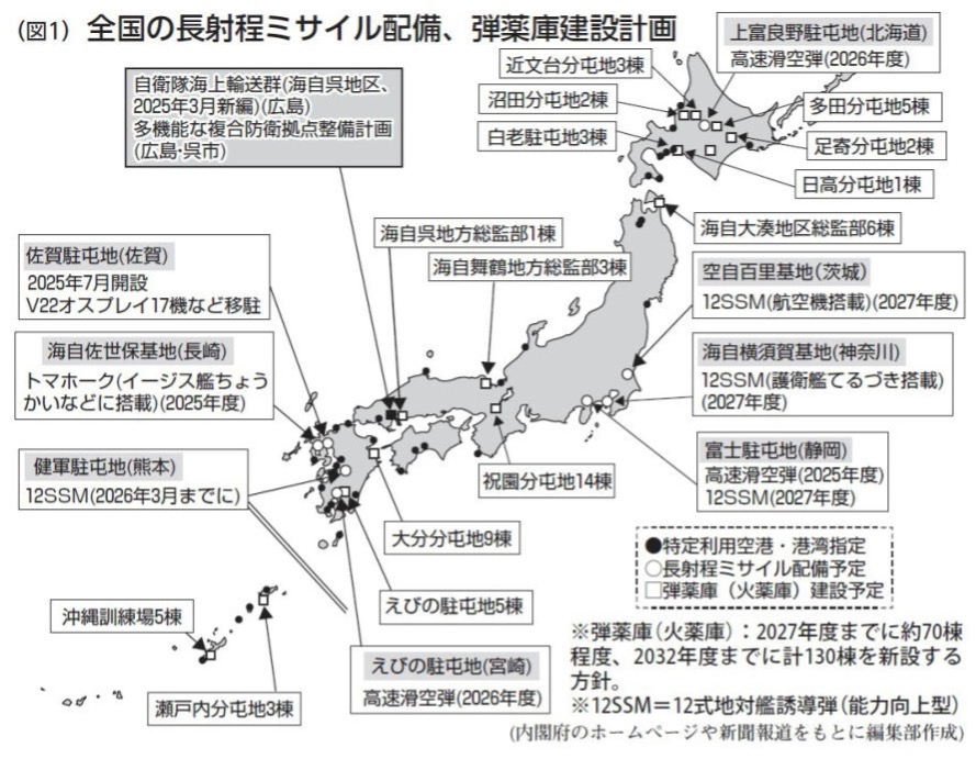 また、日本はアメリカにとって東アジア最大の軍事拠点と位置づけられ、日本政府もそれに応えて来ました。2014年の集団的自衛権容認の閣議決定、2015年の安保法制強行、2022年の安保3文書(「国家安全保障戦略」「国家防衛戦略」「防衛力整備計画」)改訂と、「戦争する国づくり」が着々とすすめられるなか、南西諸島に米軍・自衛隊共同戦力の拡大整備がすすめられ、「敵基地攻撃能力」を構想するなど、アメリカの戦争で日本が戦場と化すことが現実的懸念となっています。