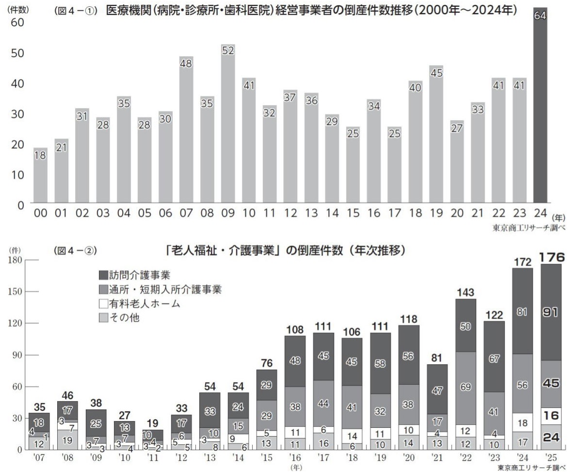 また、少子化と長い間ケアとケア労働が低く評価されてきたことを背景に、近年、看護・介護従事者の養成が重大な危機に瀕しています。看護師養成課程(大学、専門学校含む)の受験者数が激減し、特に看護師専門学校(3年過程)の受験者数は2015年8万7217人から2024年には3万5728人に減少しており、定員割れや閉校するケースが増えています。介護労働者の処遇は他産業比較で月額マイナス8万3000円(2024年値)と劣悪な状況が放置され、介護需要が増加するにもかかわらず、実労働者数が増加しないという深刻さです。介護福祉士養成学校は5年間で30校が閉鎖し、新規入学者数は医学部医学科よりも少ない状況で、かつその半数は外国人留学生にささえられているのが実情です。