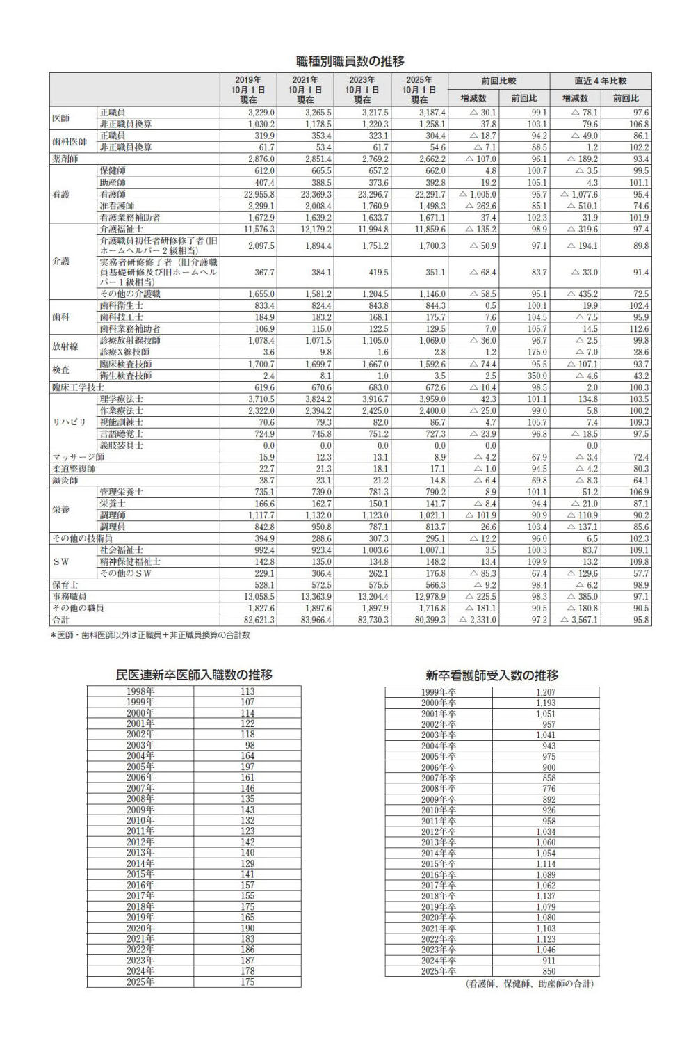 注7 WHOの提言…WHO(世界保健機関)は、新型コロナのパンデミックの教訓を踏まえ「強靭で将来に適した保健システム」を構築し、「健康関連の持続可能な開発目標」を達成するよう呼びかけ、医師・看護師などの保健人財の確保は目標達成に欠かせず、「適切な技術をもった人材が適切な場所に、適切な数、働いている」ことが必要な条件とされる(第14次総合事業計画2025~2028年)。