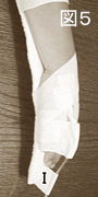 図5のようにルートが引っぱられた時に直接、刺入部に力が加わらないよう、ルートにゆとりを持たせ、Iのように固定します。