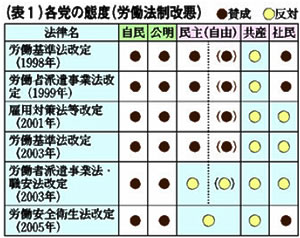 民主党は、労働者派遣法の改悪や偽装請負などを追及しましたが、労働法の度重なる改悪にほとんど賛成してきました。大企業から献金をもらい、「法人税率の引き下げについても検討を行う」(〇六年五月)という立場です。