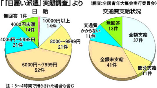 集会にむけ、全労連青年部や首都圏青年ユニオンなどが、日雇い派遣の実態を調査。派遣一六社一一三現場から寄せられた声を集めました。
