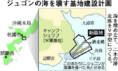 国は四月一日、新基地の環境アセス「準備書」を県に提出しました。二〇一四年の新基地完成の計画に間に合わせるように、調査はわずか一年、「サンゴや ジュゴンへの影響はなし」という結論へ導こうとするものです。環境保護団体や学者らが抗議しています。