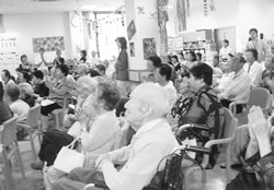 「いいもの観せてもらったちゃ」「職員さんの顔が日ごろと違って見えた」、車イスのお年寄りがニコニコ顔。七月一六日、富山医療生協・在宅福祉総合センターひまわり初の夏まつりに、目標を一〇〇人超える三五〇人が集まりました。