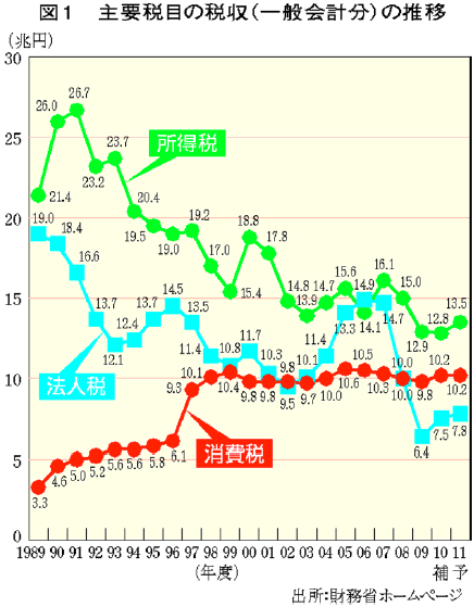 法人税収が減ったのも、大企業向けには優遇税制があるためだ。ちなみに、大銀行は決算で2000億~4000億円のもうけがありながら、法人税はゼロ (2010年)。大企業の内部留保は98年~08年で2倍に急増(財務省「法人企業統計調査」)、本当は財源はある。