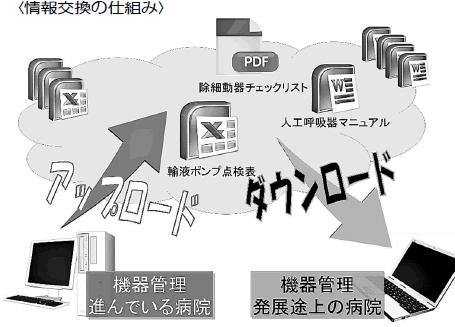 またインターネットのグループサービス機能を利用し、メンバーだけが使えるネットワークを作りました。そこでは、機器の点検表やチェックリスト、オリジ ナルの簡易説明書、マニュアルなどを共有することにしました。たとえば、とりくみがすすんでいる施設は、自施設の点検表などをアップ。未実施の施設がそれ らのデータをダウンロードし、利用できるようになりました。