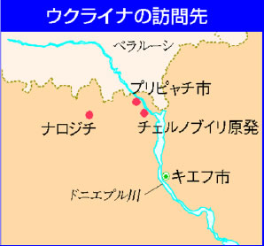 視察のスタートはウクライナの首都キエフ。ここでチェルノブイリ原発から四kmのプリピャチ市から避難してきた住民の互助組織「ゼムリャキ」と懇談しまし た。「政府が貧しいため、制度としては認められても、原発事故の被災者に補償がない」「今も先天性異常の子どもが生まれる」「被曝で夫を亡くした未亡人だ けが住むマンションがある」など胸の痛む話が続きました。
