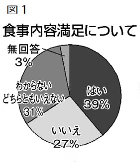五〇~七〇代が回答者の約六割。生活保護の受給に至った理由の最多は疾病(五八%)。支出に関しては「きりつめている」が九三%。一日の食事は、三割が二食以下。「食事に満足している」との回答は四割足らずでした(図1)。