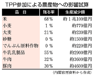 政府の試算では、TPP参加による農水産物の生産の減少は三兆円です。しかし、例えば乳製品の場合、酪農家だけではなく加工業など関連産業が地域にはた くさんあります。酪農家が倒れれば、関連産業もドミノ式に倒れ、その地域全体が崩壊するのです。