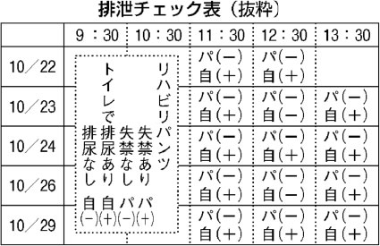 Aさんの排泄チェック表 |