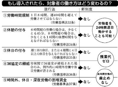 ブラック労働が違法でなくなり、健康被害や過労死を促進させる大改悪です。