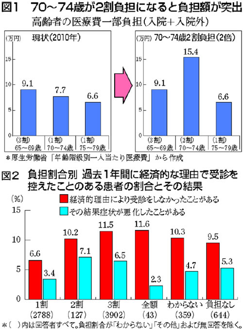 また同会の調査では、負担割合が重くなるほど受診を控えたことがある人が増え、「その結果悪化した」との回答も増加。一割負担の層は三・四%ですが二割負担では七・一%と二倍に(図2)。