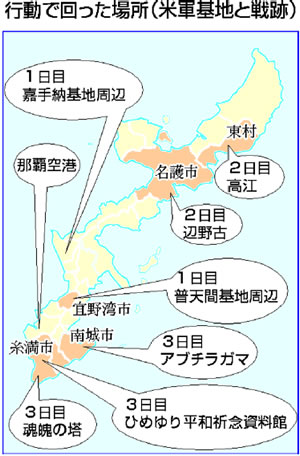 全日本民医連が主催する「第34次辺野古支援・連帯行動」が5月28~30日に行われました。昨年11月、沖縄県では「辺野古に新基地はいらない!」という県民の願いを代弁する翁長雄志知事が誕生。続いて行われた総選挙でも、小選挙区4区すべてで基地反対の「オール沖縄」議員を当選させました。にもかかわらず、政府は辺野古への基地移設を強行すべく調査を続けています。連帯行動で全国の仲間が学んだことを通じて、沖縄の状況をみていきます。(田口大喜記者)