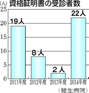 弘前市は昨年、県内一〇市で資格書発行が最多でした。同院では昨年の時点で、資格書の患者が増えたことに目を留めていました。