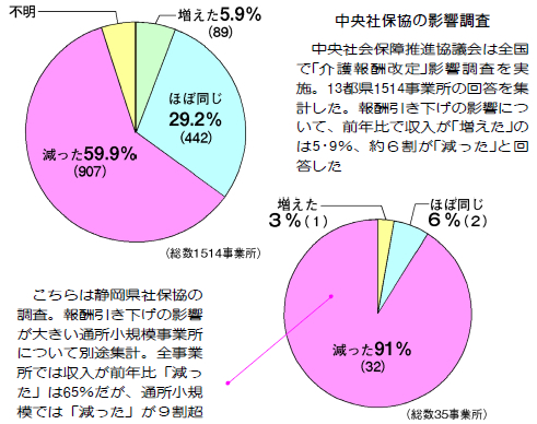 アンケートを行ったのは、報酬改定の影響が見え始めた七月上旬。実態を把握し、地域の介護事業所とつながろうと、民医連が参加する中央社会保障推進協議会のアンケートをすることにしました。