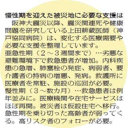社会と健康 その関係に目をこらす(3) 慢性疾患の増悪、ADL低下 避難環境が拍車 震災3ヶ月、熊本・くわみず病院から