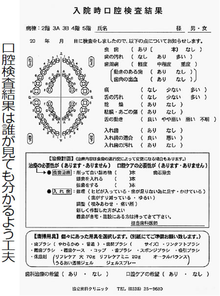 フォーカス 私たちの実践 入院患者に口腔検査 庄内医療生協協立歯科クリニック 口の健康の視点 入院時に歯科介入 口腔ケアの重要性、認知広がる