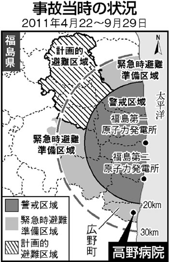 双葉郡の医療体制は、高野病院をのぞけば診療所がある程度です。原発事故前は郡内に三九人居た常勤医も、髙野院長一人になっていました。