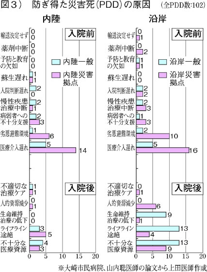 関連死を防ぐには、早く異変に気づき医療につなぐこと、病院が機能していてたどり着けること、避難所などの環境を良くし安定させることが重要です。