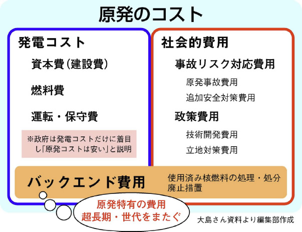 さらに政府は原発政策を撤回せず、各地で再稼働をすすめています。使用済み核燃料の再処理費用など核燃料サイクル費用も増大するでしょう。すでに、事故費用は一五兆円を超えたとみられます。「原発は安くて安全」ではなく、「原発こそが不経済」なのです。