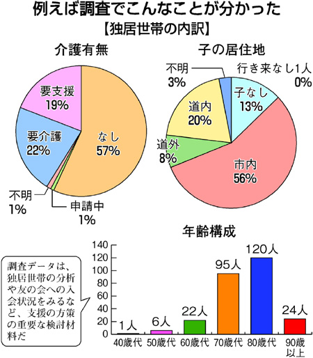 調査で聞き取った情報から、受診患者の全体像も見えてきました。高齢者のみの世帯は約六割、病院周辺に住む患者が多いものの東西に広い苫小牧市全域に患者がいることなど、数値で捉えられるようになりました。