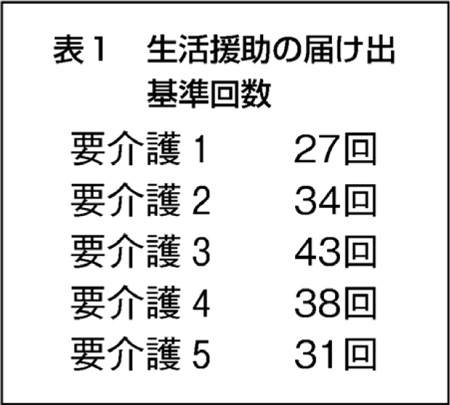 厚労大臣が定める要介護度別の生活援助の回数は表1の通り。届け出を求める理由について厚労省は、「生活援助中心型サービスでは、必要以上のサービス提供を招きやすい」から、よりよいサービスを提供するために多職種による検証を行い、「必要な場合にケアプランの是正を促していく」と説明しています。