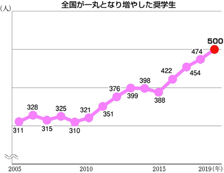 奨学生が増えるかどうかは、その時々の学生を取り巻く情勢や経済事情など不確定な要因に左右されるため、こちらが奨学生を増やしたいからと言って、順調に増やせるものではありません。