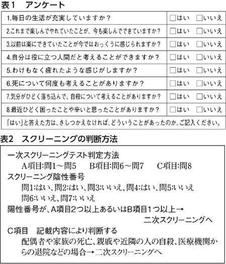 毎年7月にストレスチェックをしていましたが、新型コロナで煩雑な業務の中、ストレス指数も高くなるため早急に介入したいと、5月11~23日の約2週間でアンケートを行いました。「うつ対策推進方策マニュアル―保健医療従事者のために―2004年1月厚生労働省地域におけるうつ対策検討会」を参考に、8問の質問を用意(表1)。抑うつ症状の状態をスクリーニングし、早期介入を主な目的としました。