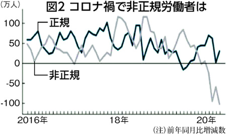 労働分野では、非正規化がすすみ雇い止めが横行。失業給付や生活保護は極度に縮小されました。その結果、コロナ禍で女性や非正規労働者を中心に大量の休業が発生、休業手当不払いも多発しています。コロナ禍で給付や特例措置ができましたが、9月末終了も多く、年末にかけて大量の解雇・失業が危惧されています(図2)。
