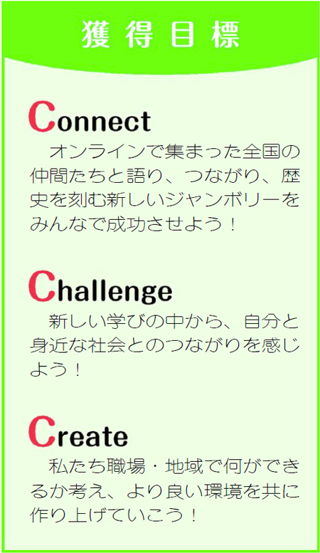 実行委員長の山内竜馬さん(京都・JBネーム‥ウォーリー)があいさつし、獲得目標(下)を紹介。「オンラインでも、たくさんの参加者が集まってくれたことがうれしい。かたくならず楽しんでほしい」と呼びかけました。全日本民医連からは会長の増田剛さんがあいさつ。「これからの民医連をつくっていくのはみなさん。全国JBが一人ひとりの未来像の探求につながり、それを民医連運動の未来にも重ね合わせてもらえたら」と期待を寄せました。韓国の緑色病院はコロナ禍で参加を見送りましたが、動画で連帯のメッセージを届けました。